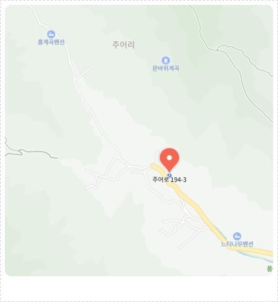 위치상 주변에 계곡들이 있고 여름에 한 번 더 와보는 것도 좋을 것 같다는 생각이 들었다. 사장님이 사람들에게 많이 알려지지 않은 좋은 계곡이라고 한다. 조금 더 계곡 쪽으로 가면 카라반 캠핑장이 있는 것 같았다. 예약전에 사장님이 여기저기 괜찮은 곳들을 알려주신다. 고기는 오기 전에 "우돈타"라는 곳을 들러서 사면 좋고 숙소 주변에 치킨, 중국집 정도 배달이 가능하다 알려주셨다. 바베큐를 하려면 고기는 우돈타를 추천한다. 경기 광주를 거처 온다면 숙소가는 길에 방문해서 사올 수 있다. 우리는 주류나 기타 먹을건 식자재 마트에서 구매한 뒤 고기는 우돈타, 숙소 주변 가게에서 나무 장작정도만 구매를 했다. 슬슬 약속시간이 되자 1~2명씩 숙소로 도착하고 대부분 1시간~1시간20분정도 소요되었다고 한다. 길 찾는데 전혀 어려움은 없었다.